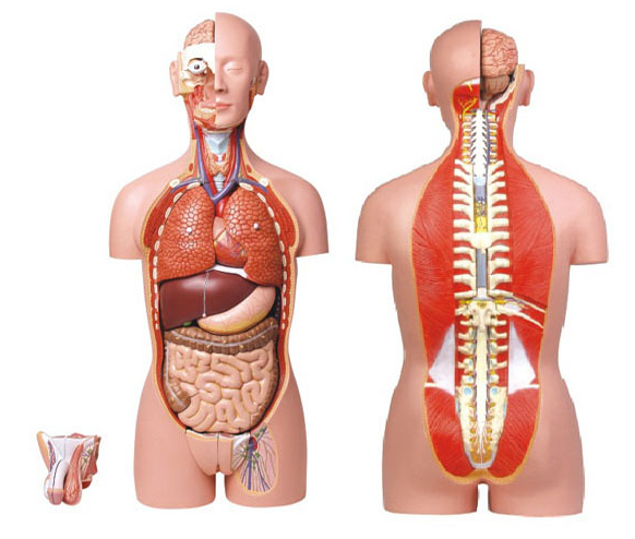 ■ 功能:85CM自然大人體兩性開背豪華型軀幹,共27部件,男女生殖器可互換,詳(xiáng)細的再現軀幹內部器(qì)官細節構造和人體各大學堂結構以及人體軀幹背部(bù)肌肉的基本結構,並且在每一個器官或結構部位都標示了數字,結合說明書有利(lì)於精確地認識人體解剖學的器(qì)官結構(gòu),適於教學(xué)研究的目的(de),模型部件包括:大小腦(1),眼球(1),左右肺(4),食管(1),氣管(1),肝和膽囊(1),胃(wèi)(2),心髒(2),胰脾十(shí)二指腸(1),腎蓋(1),男(nán)性內外(wài)生殖(zhí)器(4),女性內外生(shēng)殖器(4),大腸(cháng)小腸(cháng)帶盲腸蓋(2),軀殼(1),胸椎(1),安放於塑料座上(shàng)。