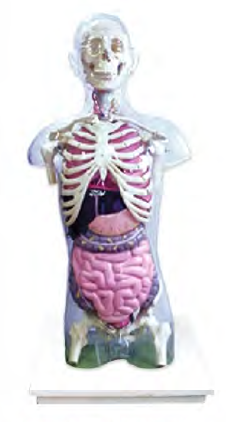 ■ 部件(jiàn):由男性半身骨架及內髒(zāng)器官附透明亞克力軀殼(ké)串製而成一(yī)個(gè)整體,固定在底板上;