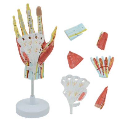 功能:此模型為自然大,手局解模型(xíng),展示了手部的主要(yào)肌肉(ròu),韌帶(dài),神經(jīng)和血管分布;
