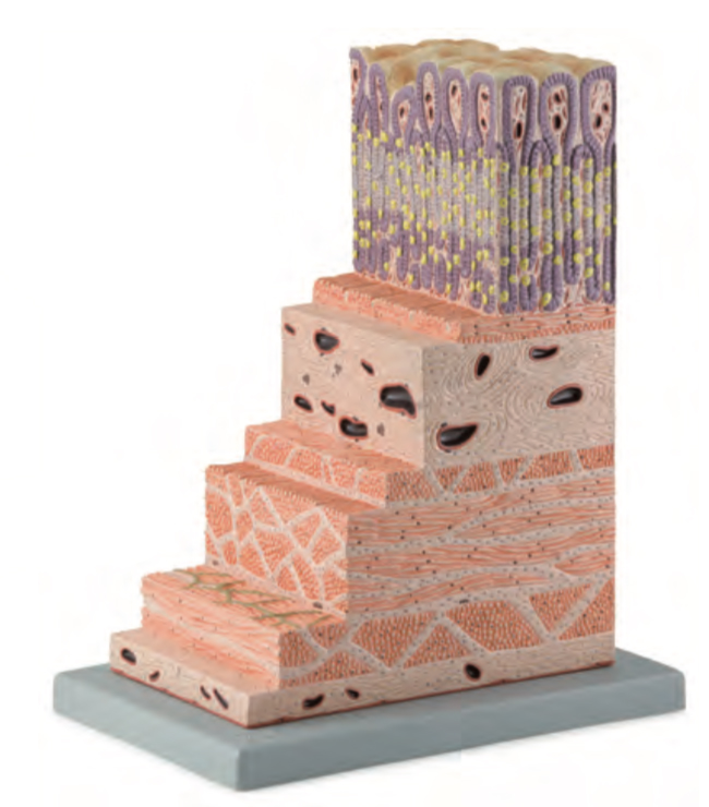 ■ 功(gōng)能:這個150倍真人大小的整體模型是研究消化係統中胃的重要(yào)器(qì)官的組織學的重要工具。從上皮(pí)到漿液層的所有不同層(céng)都以非常精確和詳(xiáng)細的方式呈現。包括不(bú)同細(xì)胞類型、毛細血管和淋巴管在內的主要結構在隨(suí)附手冊(包括)中進行(háng)了(le)編號和識別;