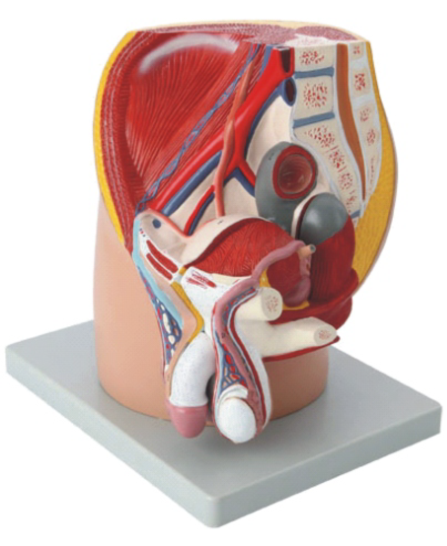 ■ 功能:模型由4個(gè)部分(fèn)組成,通過骨盆的正中矢狀截麵呈現一個開(kāi)放的視圖。男性(xìng)泌尿生殖係統的內部結(jié)構非常詳細。可移動的部分包括一(yī)半的(de)陰莖分為內側(cè)和橫切麵,以及一半的男性(xìng)生殖係統,睾丸的開(kāi)放性解剖顯示了內部結(jié)構的細節;