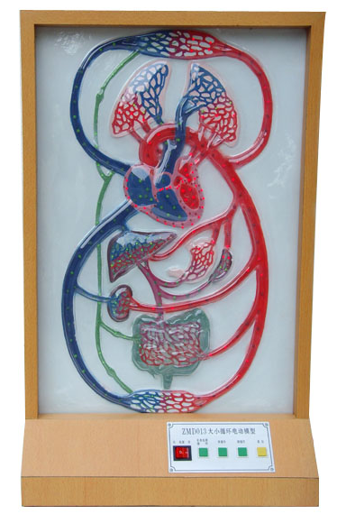 ■ 功能:該模型作(zuò)大小循環電動模型的心髒作冠(guàn)狀切麵,顯示心(xīn)髒(zāng)左、右心(xīn)房,左、右心室及整個心動周期內的搏動(dòng)狀況(kuàng)與(yǔ)血液循環的生理機製,模型模擬人(rén)體心髒心動周期的活(huó)動,利用燈光的流動,演示血(xuè)液(yè)在血管內流動的情況(kuàng)及體循環和肺循環的途徑,用於中小學校與大專院校講解人體解剖(pōu)學課程,幫助學生了解心髒結構,心動周期與血(xuè)液循環的途徑;