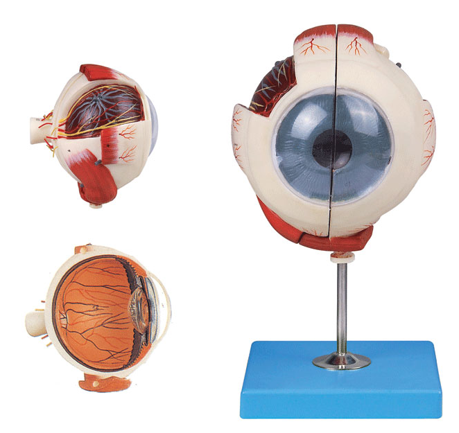 ■ 尺寸:放大5倍,210×130×150mm;■ 部件:2部件,置於底座上;■ 功能:該模型將眼球縱切成兩部(bù)分,左半側(cè)的晶(jīng)狀體與玻璃體為固定形狀,右半側的鞏膜可局部打開看到脈絡膜,眼(yǎn)球內部顯示睫狀體、視網膜(mó)以及(jí)視網膜剖麵(視網膜神經層構(gòu)造)等結構;