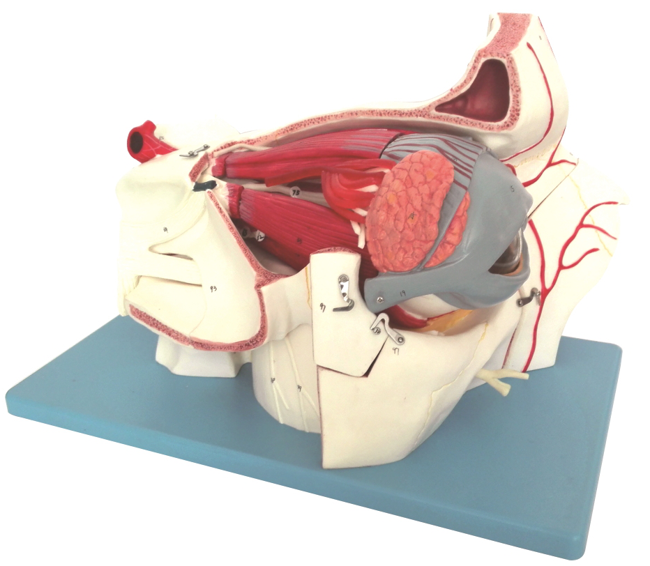 ■ 功能:模型由眼眶、眼球壁、鞏膜、脈絡膜和視網膜、玻璃體、眼球外肌以及眼眶(kuàng)壁和鼻甲(jiǎ)10個(gè)部件組成,詳(xiáng)盡的展示了眼(包括眼球(qiú)壁和內容物)、眼副器(包括眼瞼、結(jié)膜、淚器和眼球外肌)以及眼的(de)血管和神經等(děng)結構;