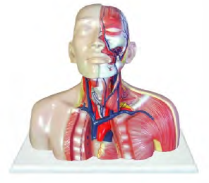 ■ 功能:模型(xíng)經第4一5胸椎高度橫切,右(yòu)側及後側保留皮(pí)膚,左側作 層次解剖,並切開胸骨,暴露心髒(zāng);顯示上腔(qiāng)靜脈(mò)在頭頸部的各級屬(shǔ)支,胸腔上部解剖至上腔靜脈;