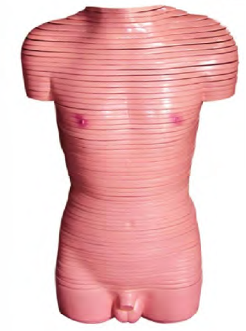 ■ 功能:顯示男性水平斷麵解剖模型結構(gòu)和形態,將人體從頸部到盆部整個軀幹(gàn)分解成64片典型部分的結構,由頸根部至坐骨結節作(zuò)厚約10mm橫切片;