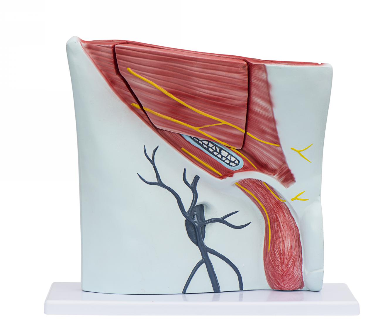 ■ 功能:模型為男(nán)性腹肌溝部位解剖(pōu),上至臍部,下達髂棘(jí)下方。顯示腹股溝主要血管神(shén)經等(děng)局解;