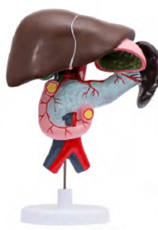 ■ 功能(néng):顯示肝的外(wài)形及固有韌帶(包括肝冠(guàn)狀韌帶、鐮狀韌帶左右三角韌帶(dài)以(yǐ)及肝圓韌帶)。肝的左葉、右葉、方葉、尾葉及肝門(mén)處(chù)諸結構(右前(qián)方的左、右肝管和肝管、 左前方的肝固有動(dòng)脈和左(zuǒ)右(yòu)支、與其後(hòu)方門靜脈的位(wèi)置關(guān)係)顯(xiǎn)示下腔(qiāng)靜脈末端、膽囊、膽囊體、膽囊頸、膽囊(náng)管並與肝總(zǒng)管合成膽總管,胰的形態、結構(胰頭、胰體、胰(yí)尾、胰大、小管),十二指腸(cháng)下部、降部、下部(bù)、升部及(jí)十二脂腸乳頭,門(mén)靜脈、膽總管、肝固(gù)有動脈及總管與胰腺大管匯集開口於十二指腸乳(rǔ)頭等結構;