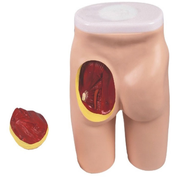 ■ 左臀部外上四分之(zhī)一可卸下,便於觀察確認其內部結構:臀中(zhōng)肌、臀大肌的肌(jī)肉(ròu)、坐(zuò)骨神經(jīng)和血管結(jié)構