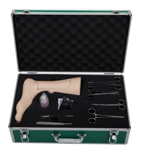 ■ 仿真腿模型由進口PVC塑膠材料,經模具澆模工藝製成,用具有彈性的矽膠材料做成外皮,內部由發(fā)泡填充。在(zài)仿真腿模型的內踝上方(fāng)有一長的凹(āo)槽,用於放置(zhì)大隱靜脈切開模塊,其內部埋有模擬血管,模擬大隱靜脈走行設計,整個模塊血管可(kě)以很方便地進行更換