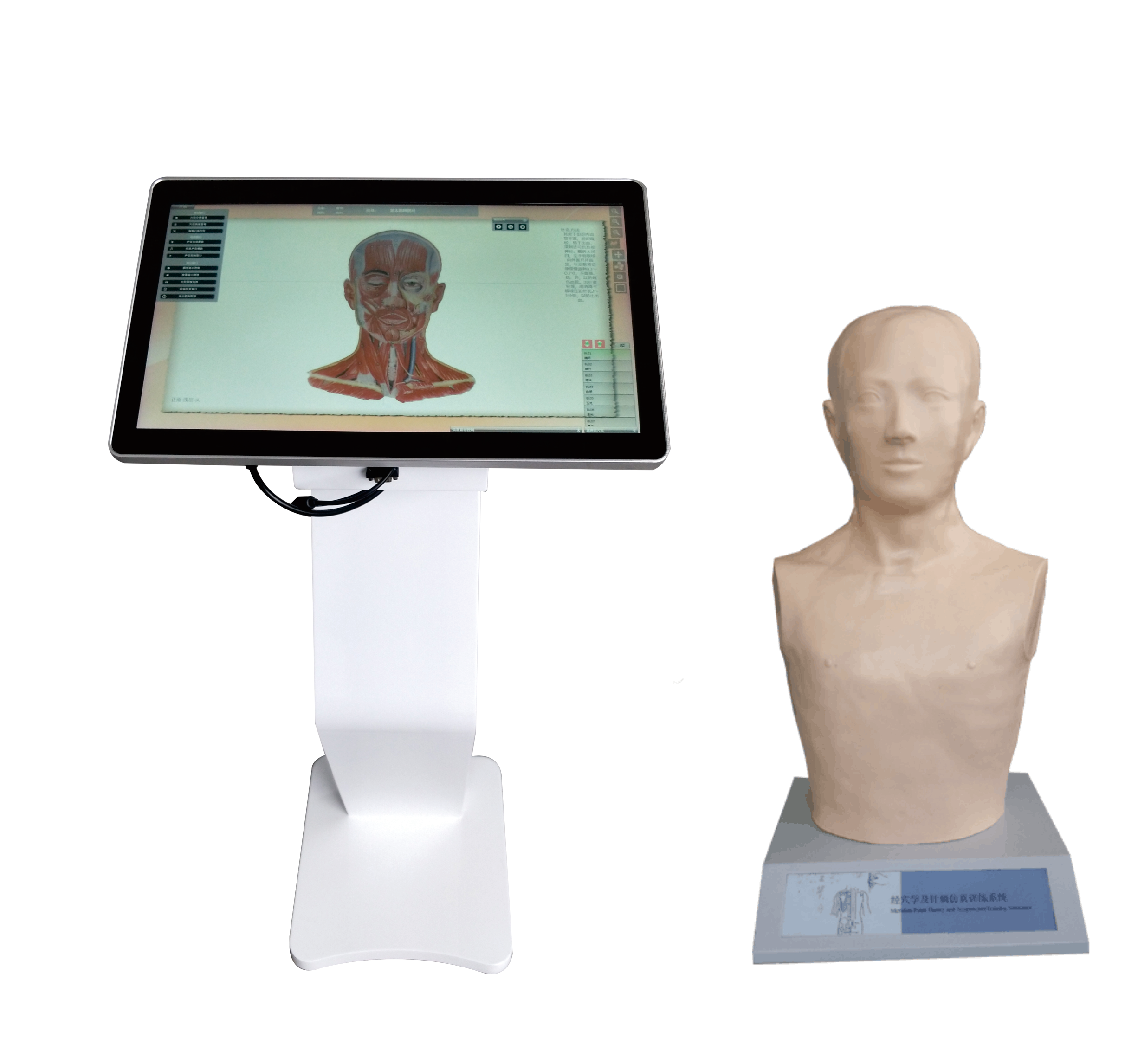電子掛圖,聲音、屏幕、人體模型同步顯示經絡腧穴的(de)信息(xī);